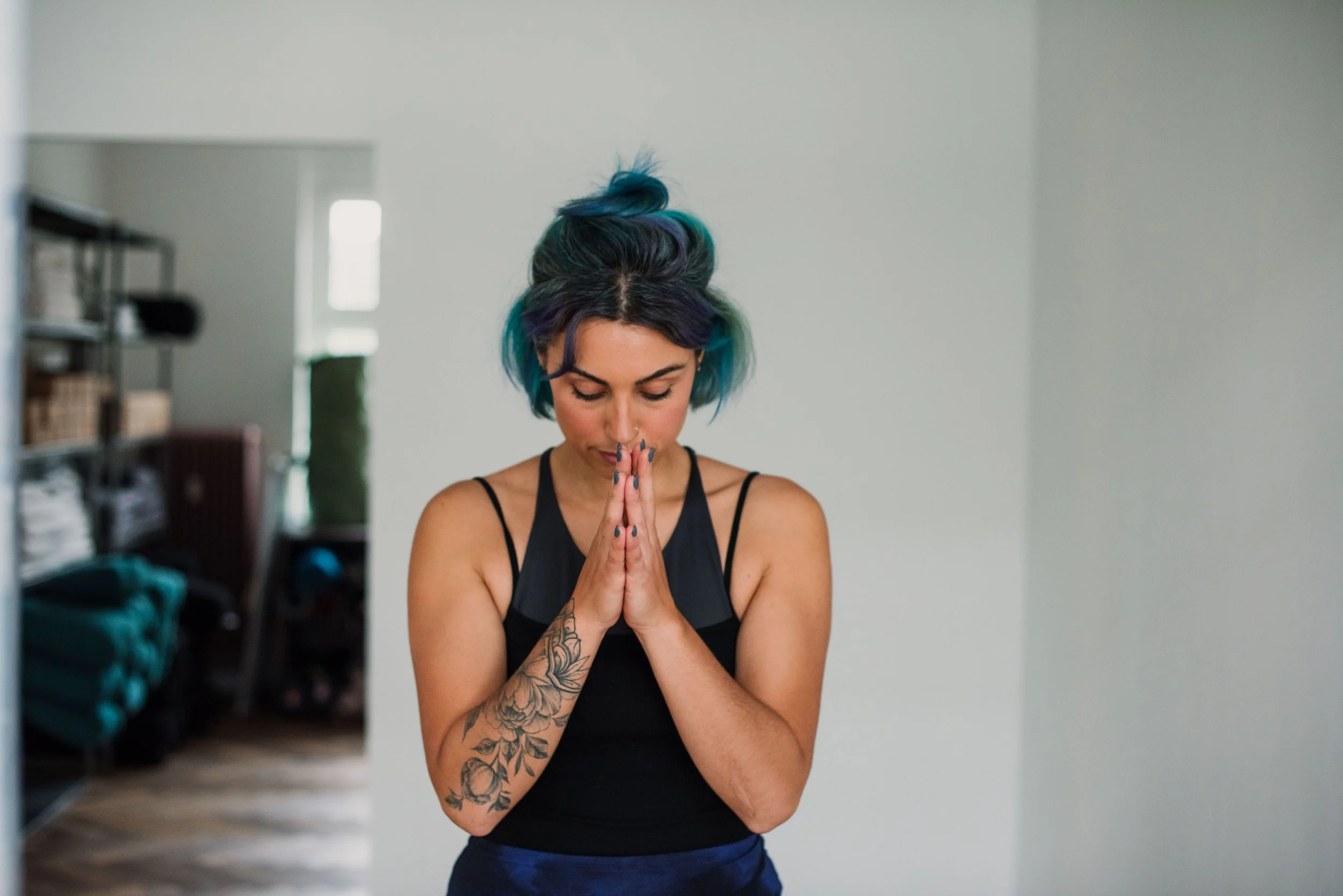 You can join our Mysore program via a hybrid class set-up - where Katy will guide and support you via Zoom while simultaneously guiding in the in-studio Mysore room.